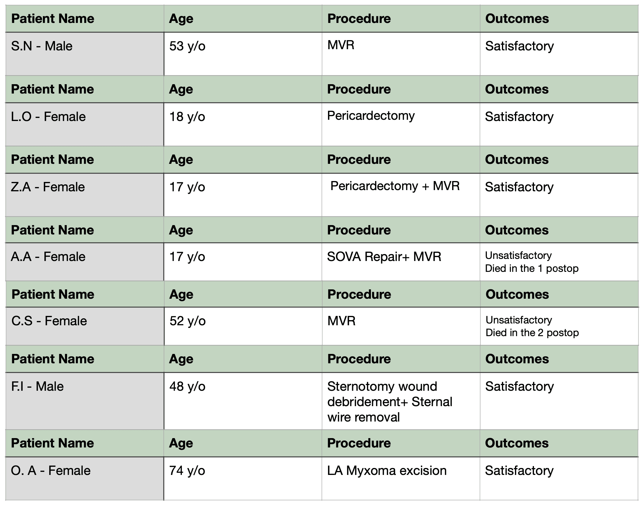The spectrum of procedures performed reflected this educational and clinical balance. Cases ranged from lower-complexity interventions, such as atrial myxoma resection, to more complex surgeries, including coronary sinus aneurysm associated with ventricular dysfunction, constrictive pericarditis, and redo cardiac procedures. This variety facilitated broad operative exposure and strengthened multidisciplinary collaboration. The camp started with two surgeries on Saturday, followed by operative sessions on Monday, Tuesday, Wednesday, and Friday. Due to logistical constraints—including an unexpected shortage of blood and the critical condition of patients in the ICU—Thursday was designated for administrative and organizational activities rather than surgical procedures. In addition to clinical care, substantial material support was delivered to LASUTH. Donations included cardiac prostheses, cannulas, sutures, connectors, bovine pericardium patches, patient monitors, and infusion pumps. A portable echocardiography machine was also provided, enabling intraoperative transesophageal echocardiography and significantly enhancing perioperative cardiac care. Despite careful planning, some patients were unable to present from their home cities, necessitating adjustments to the surgical schedule. Nevertheless, the mission successfully achieved its clinical and educational objectives. During the mission in Lasuth, two patients, identified as A.A and C.S, experienced postoperative outcomes that were considered unsatisfactory. Patient A.A was a highly complex case, requiring an extended cardiopulmonary bypass time due to the technical demands of the surgical procedure. An adverse outcome was identified on the first postoperative day. Patient C.S, despite initial postoperative management, unfortunately died on the second postoperative day. In view of these events, and in alignment with the program’s commitment to continuous quality improvement and patient safety, a Phase of Care Mortality Analysis was conducted on Friday evening. This structured review involved the entire multidisciplinary team and aimed to systematically evaluate each phase of care, identify potential vulnerabilities or gaps in clinical processes, and define opportunities for improvement to enhance outcomes in future missions.